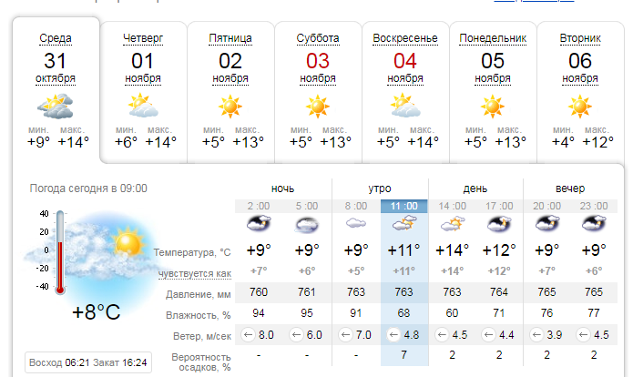 Отметим, что со среды, 1 ноября, будет солнечно и без осадков.