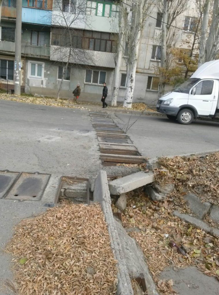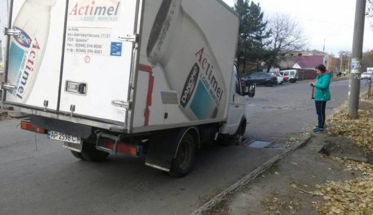 Так, ЧП случилось в Пологах. Там грузовик в центре города застрял в сливной канализации посреди дороги. Колесо автомобиля провалилось в поврежденную решетку.