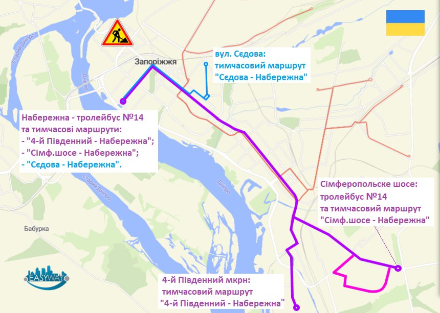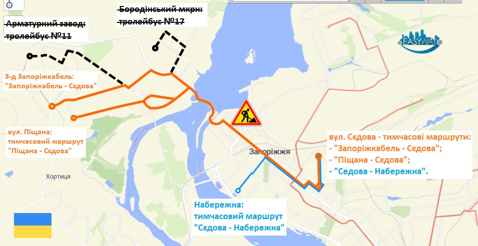 Причина змін маршрутів — проведення робіт по відновленню асфальтобетонного покриття двох смуг проїзної частини дороги по проспекту Соборному в районі зупинки “Філармонія”. Ремонт проводить КП «Водоканал». Про завершення робіт буде повідомлено окремо.