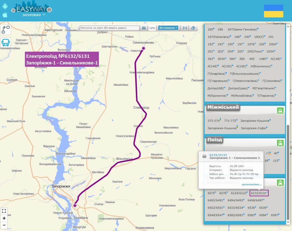 Це стосується електропоїзда №6132/6131 Запоріжжя-1 – Синельникове-1: