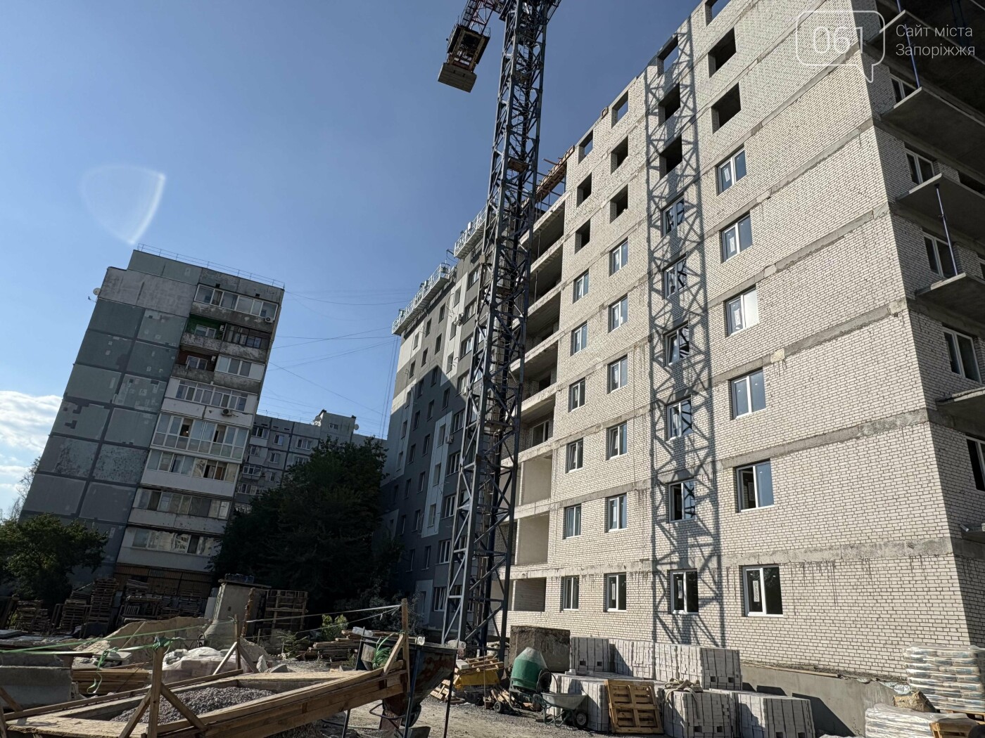 Керівник підрядної організації «Сансет» Михайло Агеєв підтверджує, що їхня компанія працює на обʼєкті не з початку. Тут був фундамент і початок першого поверху. Ми вигнали всі майже 9 поверхів. Заново заливали стіну в будинку, що по сусідству. Один підʼїзд повністю відбудовано — 36 квартир, ще один підʼїзд в цьому будинку і кілька квартир в сусідньому — часткового відновлюємо. Загалом 20 квартир відновлюємо. Надскладність в тому, що ми не з нуля тут працюємо. Наприклад, можна пробачити, що вікна не на одному рівні . Це через те, що фундамент на 400 мм завищений», — каже пан Михайло.