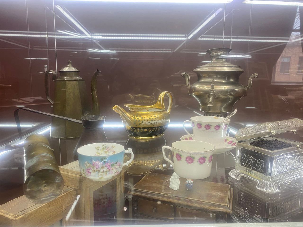 Серед експонатів також старовинні дзеркала, вішалки для одягу, коробки для капелюхів, самовари, праски, елементи одягу та взуття, а також ножна швейна машинка.