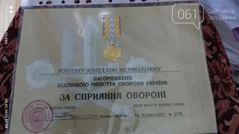 У 2024 році Наталія Анатоліївна була нагороджена відзнакою Міністерства оборони України «За сприяння обороні».