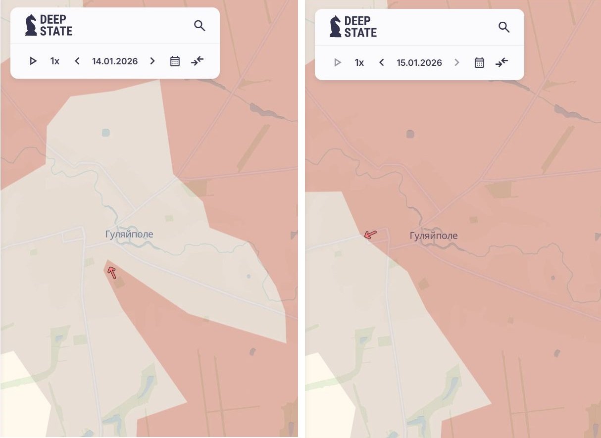 Російські окупанти мають нові просування у Гуляйполі, Красногірському і Привільному Запорізької області, а також у районі Залізнянського Донецької області. Про це повідомив OSINT-проєкт DeepState 15 січня.