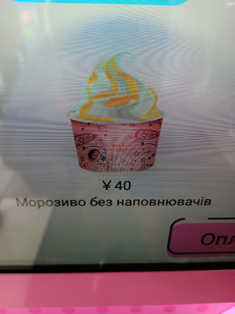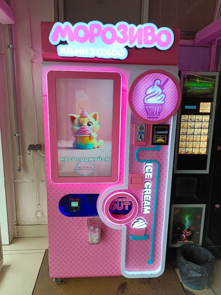 Слогани на автоматі закликають: «Насолоджуйся», «Створи свій ідеальний смак», «Морозиво — візьми з собою».