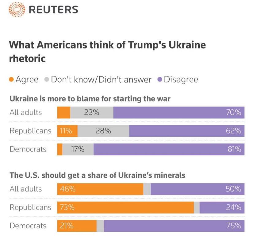 Згідно з опитуванням, 70% американців не згодні з риторикою Трампа щодо України, згодні лише 7%.