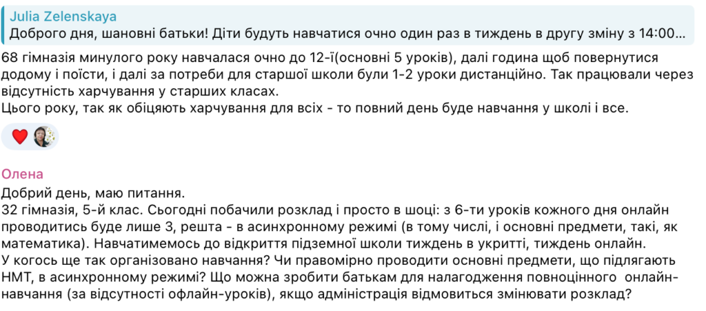 Наприклад, у школі №100 завуч не зміг надати жодного документа на підтвердження розкладу. Це підриває довіру та залишає родини сам на сам з організаційними проблемами.