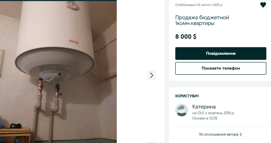 “Квартира вільна, один власник, готова до продажу”, – йдеться в оголошенні.