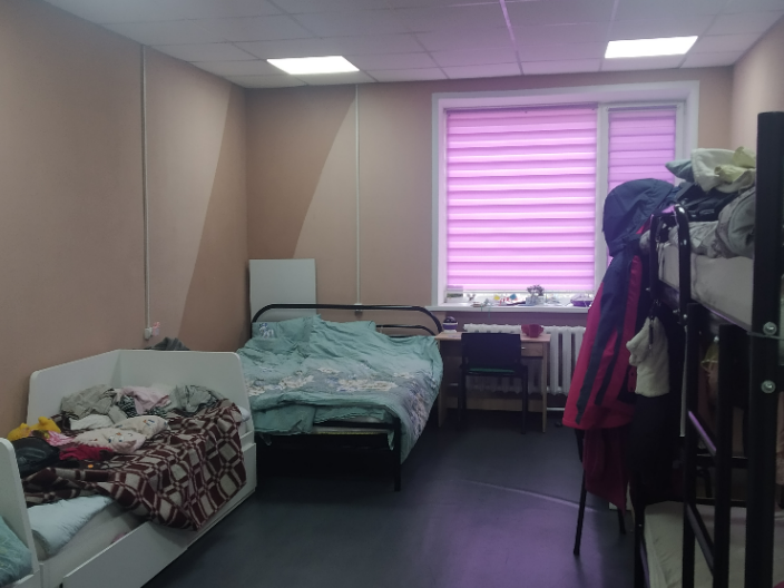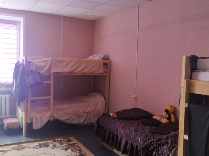 Проживання — безкоштовне, умови — прийнятні. Центр розміщується в окремій двоповерховій будівлі. У наявності чотири житлові кімнати, де переважно мешкають жінки та діти.