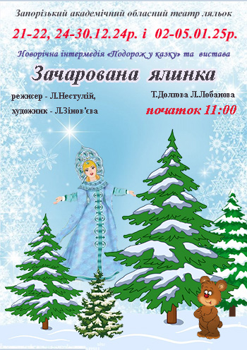 З 24 грудня по 5 січня кожного дня (окрім 31 і 1) Запорізький обласний театр ляльок буде проводити новорічну інтермедію «Подорож у казку» та виставу «Зачарована ялинка».