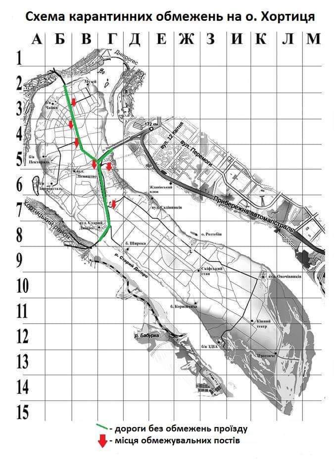 Окрім цього, згідно з рішенням Обласного Штабу з ліквідації наслідків надзвичайної ситуації вводиться обмеження на з’їзд автотранспорту з основних транзитних доріг. Обмеження не стосується лише мешканців та працівників установ, що розташовані на о. Хортиця. Вони повинні мати із собою документ, який підтвердить проживання або роботу в межах острову.