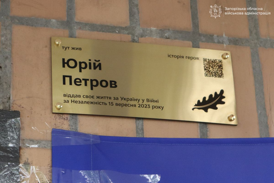 Запоріжець Юрій Петров пішов з життя у вересні 2023-го під час бойових дій на території Донецької області. Тож через два роки на будівлі, де проживав захисник, з’явилася меморіальна табличка з його ім’ям.