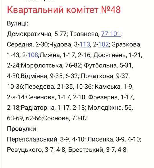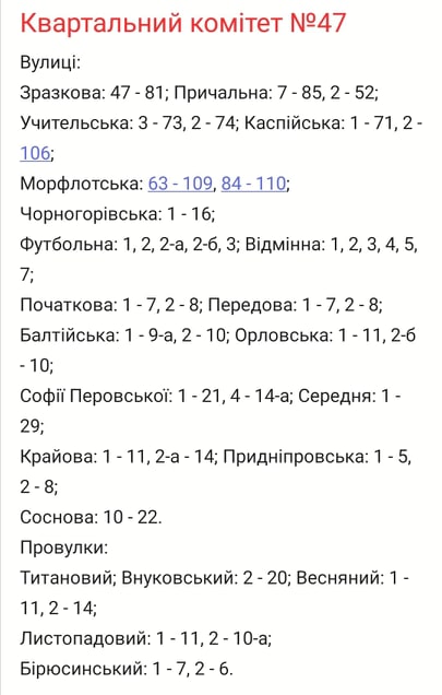 Електроенергія буде відсутня з 9:00 до 17:00 за наступними адресами: