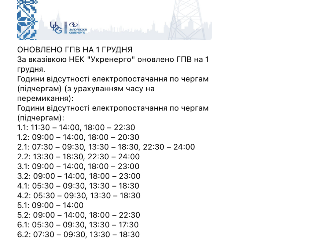 З 26 листопада Запоріжжяобленерго офіційно перейшло на новий, пілотний механізм формування графіків погодинних відключень. Це – перша за довгий час масштабна зміна логіки обмеження електропостачання в області, яка має зменшити навантаження на населення та стабілізувати роботу енергосистеми у прифронтовому регіоні.