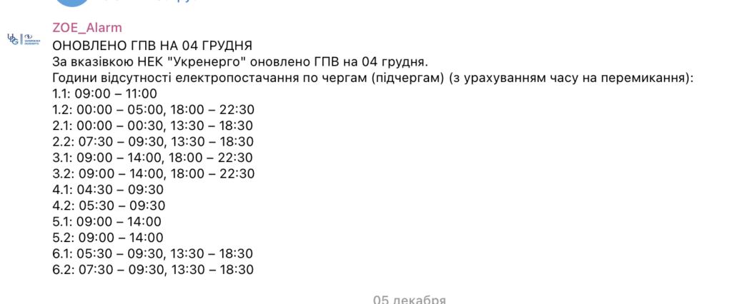 3 –5 грудня: підвищення частоти вимкнень і повернення до тривалих блоків