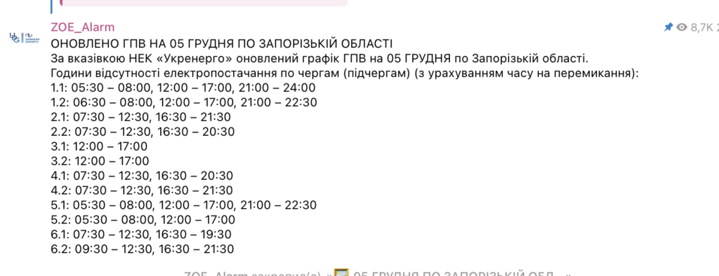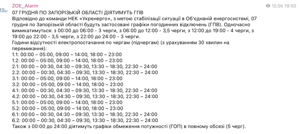Причина змін – не лише побутовий комфорт. Запорізька область залишається прифронтовою, і довгі перерви в електропостачанні створювали ризики для оборонних об’єктів, лікарень, комунальної інфраструктури, пунктів реагування. Саме тому обласна військова адміністрація та енергетики два тижні працювали над альтернативним алгоритмом, який би дозволив знизити тиск на побутових споживачів, не порушуючи загальний баланс у системі.