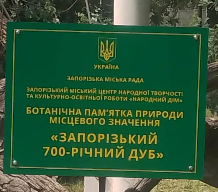 До відома: Запорізький дуб мав висту 36 метрів, у 1972 році дерево отримало статус заповідного, а у 2010 році стало Національним деревом України. У 1990 році у Запорізького дуба залишилася лише одна жива гілка, котру десятиліттями намагались лікувати та підтримувати від руйнування.