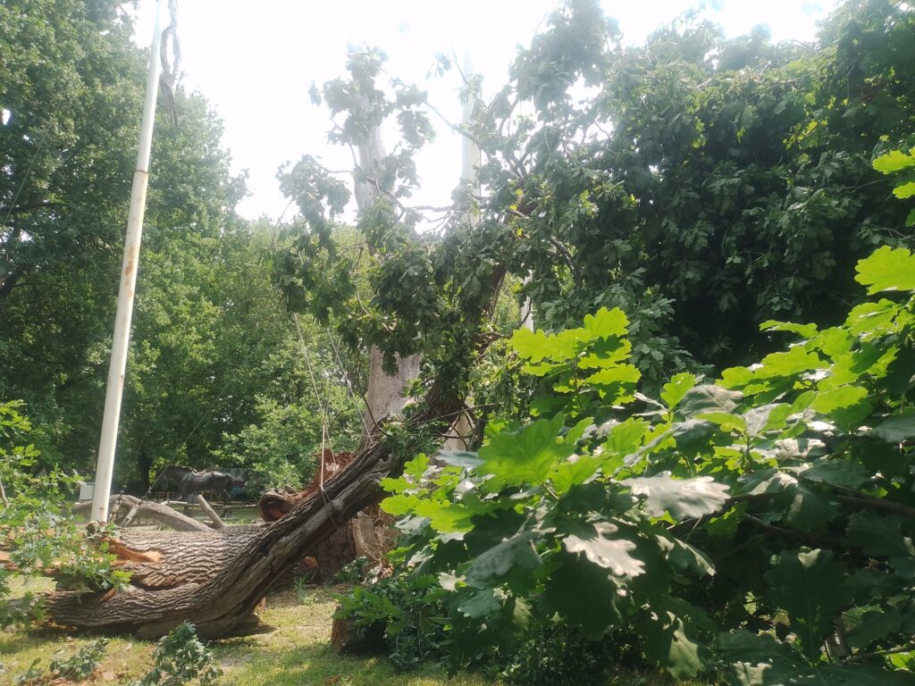 “Попередньо, причина — це вік. Погода ж у нас з 3 на 4 червня нічого такого не було, якихось там ураганів і так далі. Об’єктивно ця частина гілки вже давно була у такому, не гарному стані, в плані “фізіології” цієї рослини. Тому, по факту, це було просто питання часу. Це остання жива його частина”, — зазначив Олексій Максименко.