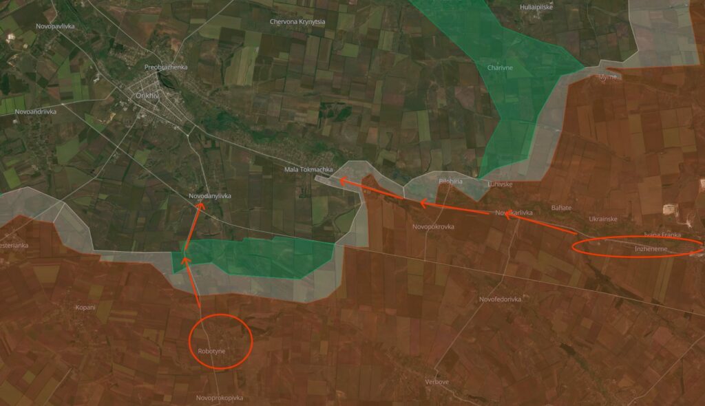 Ще один штурм було відбито на південь від Оріхова, в районі Роботиного та Новоданилівки.